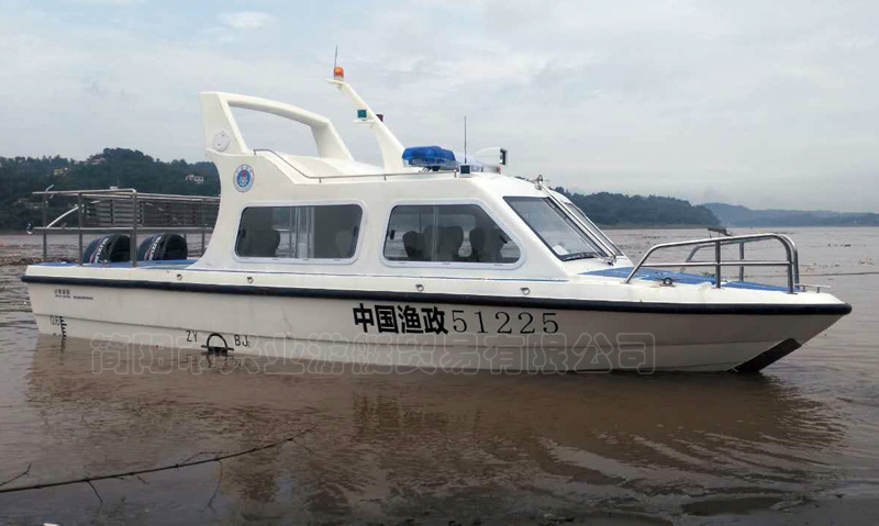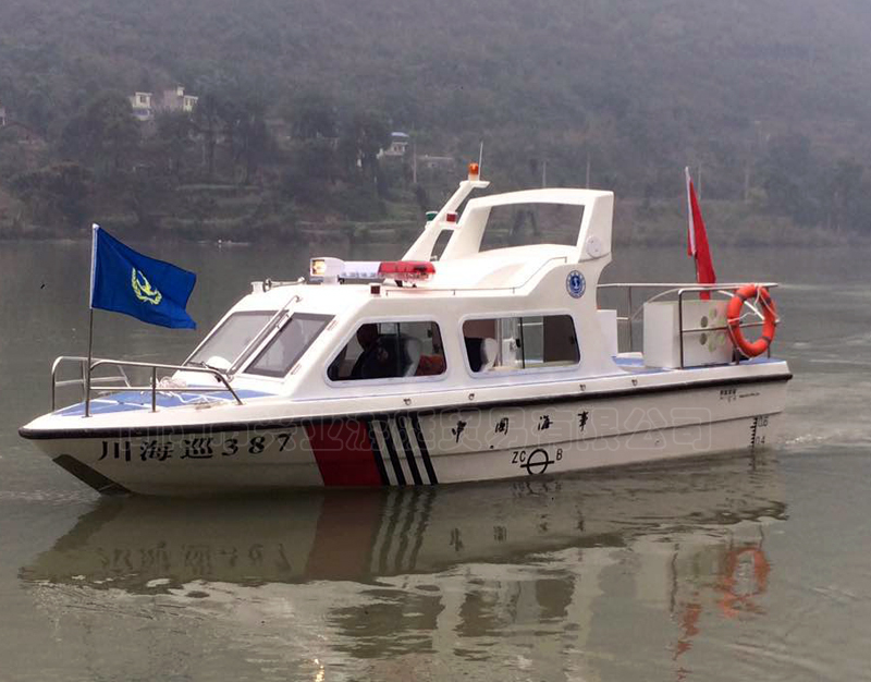 本艇殼板采用玻璃鋼陰模成型,表面層為彩色膠衣樹脂,具有美觀、耐腐蝕,保養(yǎng)費用低等 諸多優(yōu)點,可廣泛作為公務(wù)執(zhí)法、水上交通、旅游觀光等方面使用。